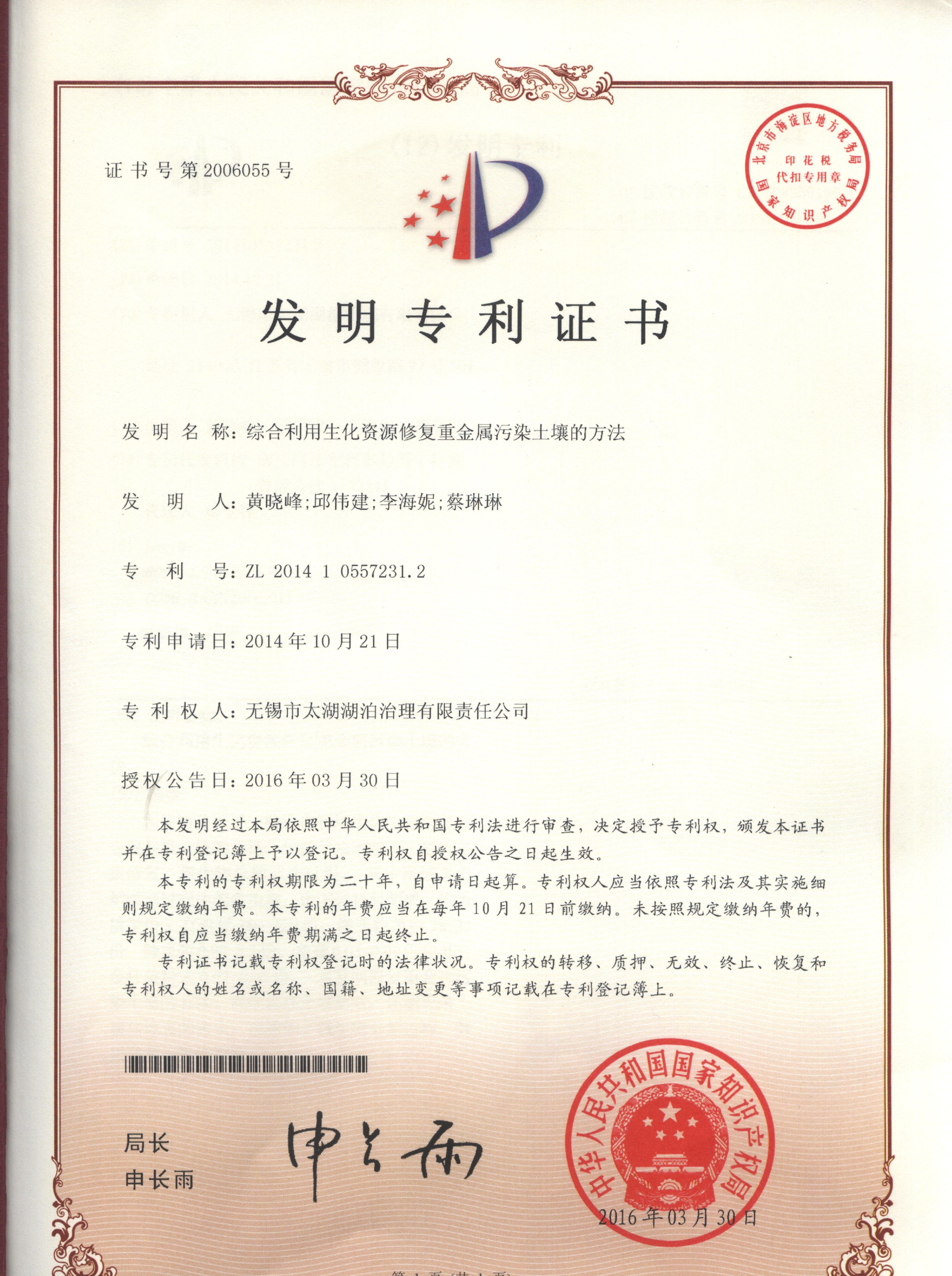 湖泊公司喜獲國(guó)家發(fā)明專(zhuān)利授權(quán)