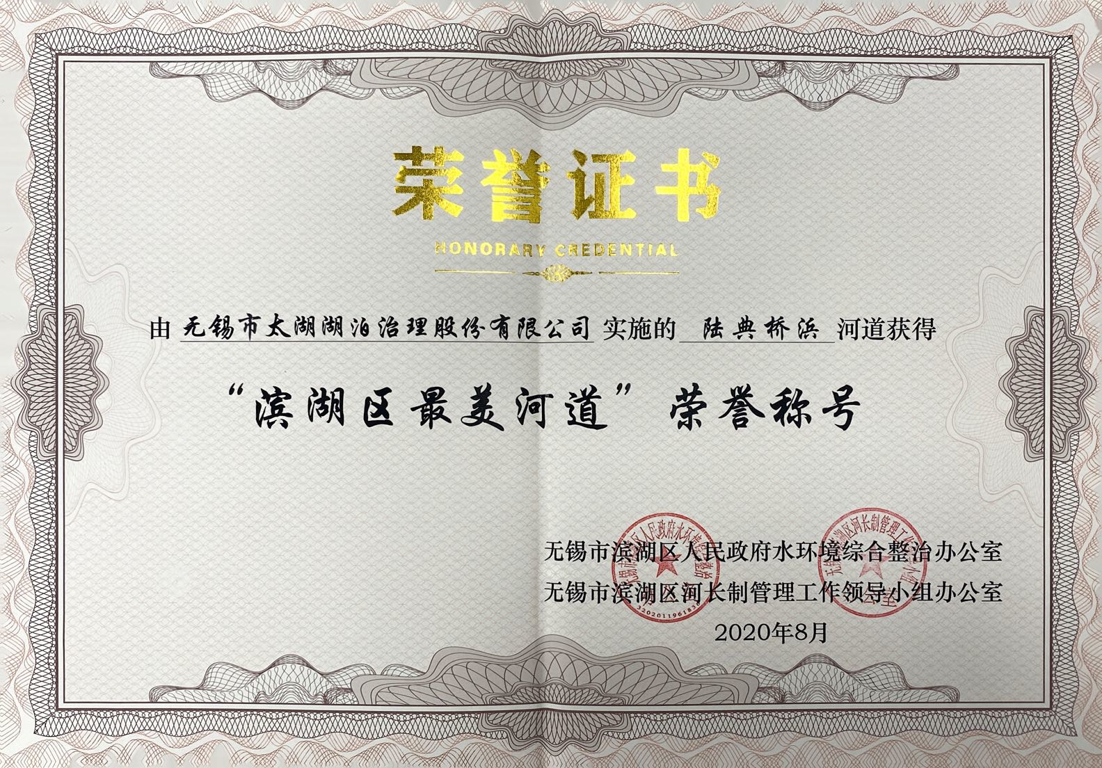 陸典橋浜河道獲得“濱湖區(qū)最美河道”榮譽(yù)稱(chēng)號(hào)